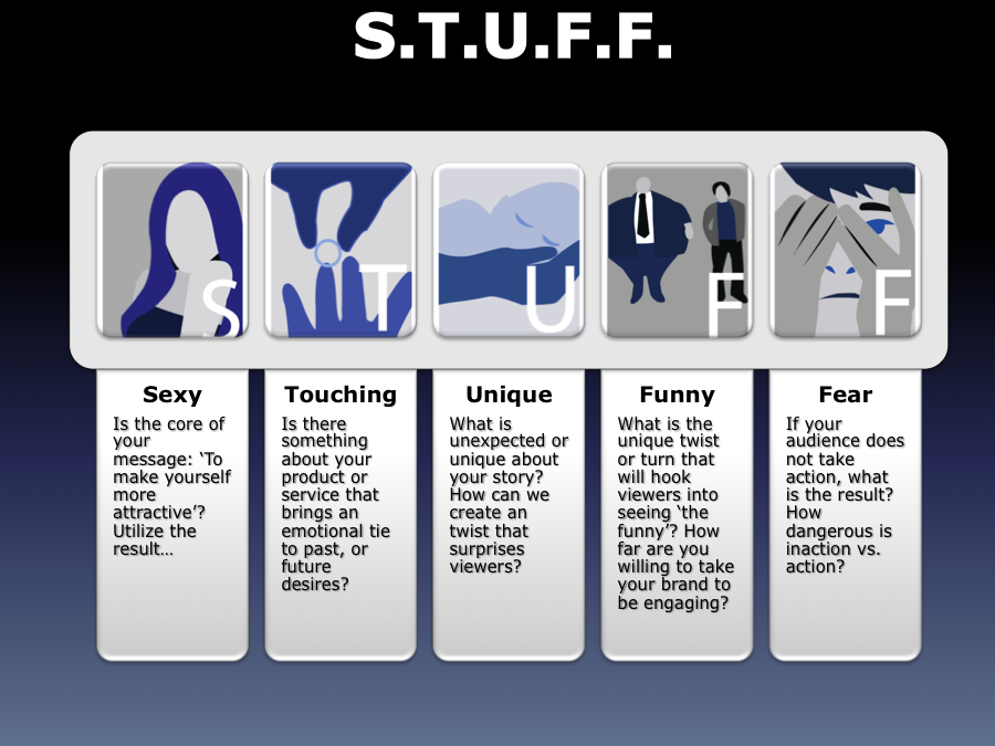 If you apply the S.T.U.F.F. to your story, and it is produced as a whiteboard animation, animation, or live action commercial, you’ve got yourself a potential winner.